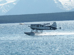 Boven: ons watervliegtuig komt aan nadat het een ander groep heeft