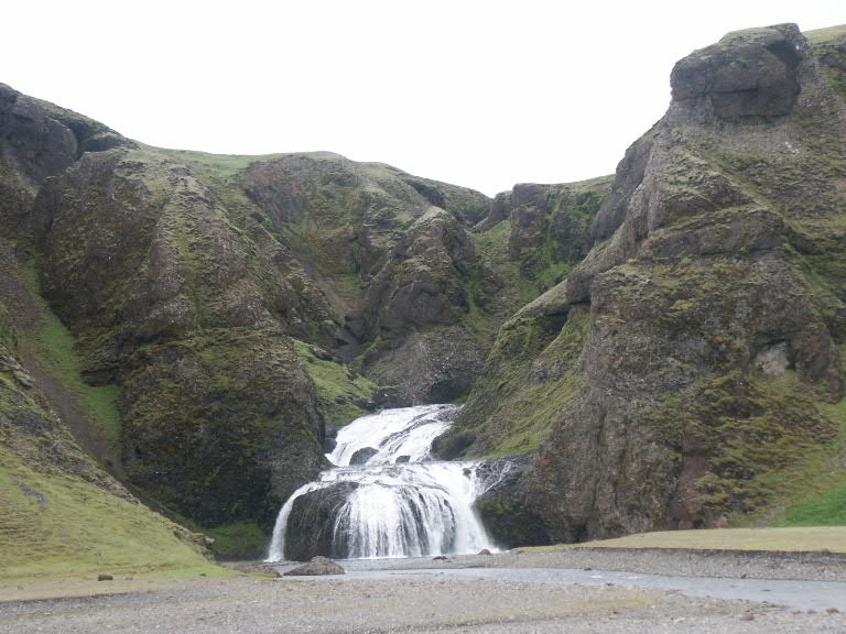 De eerste stop is bij Kirkjubaejarklaustur. Hier zijn weer een mooie watervallen, waar we korte wandeling maken.