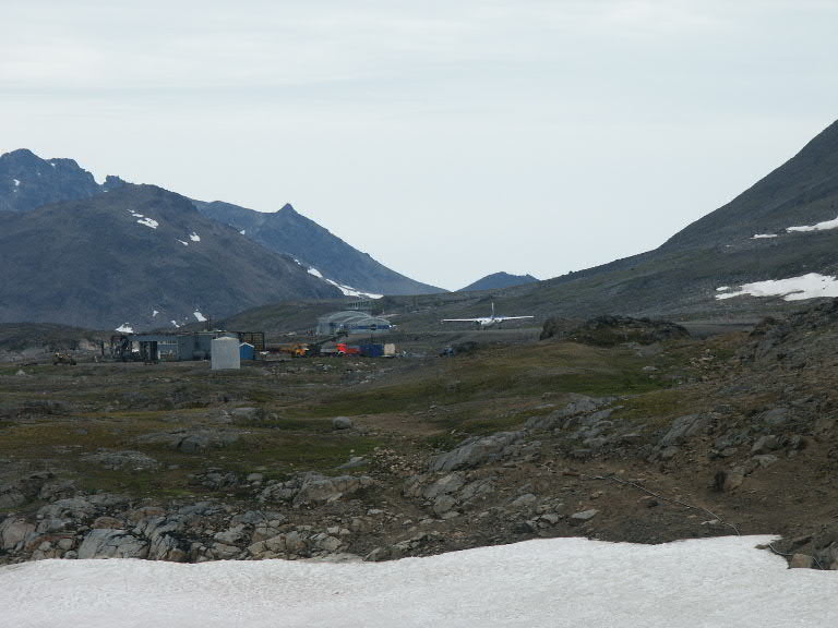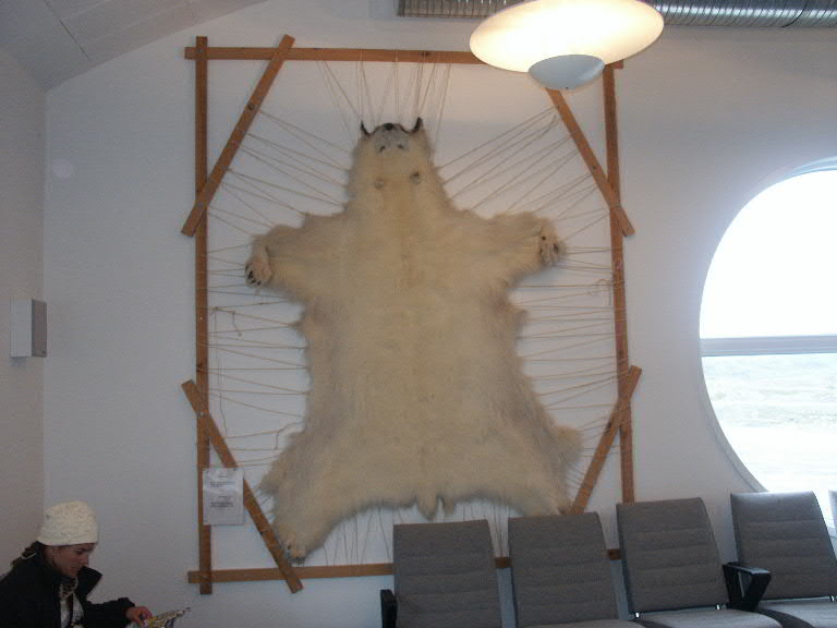 Links nog enkele plantjes. Rechts de huid van een ijsbeer in het vliegveld, geschoten direct voor de deur. Dat was overigens in de winter, zomers komen de beren niet zo dichtbij het dorp. Gelukkig maar - een IJsbeer is de gevaarlijkste beer die er is, er zijn voldoende gevallen bekend van mensen die zijn gedood door ijsberen.