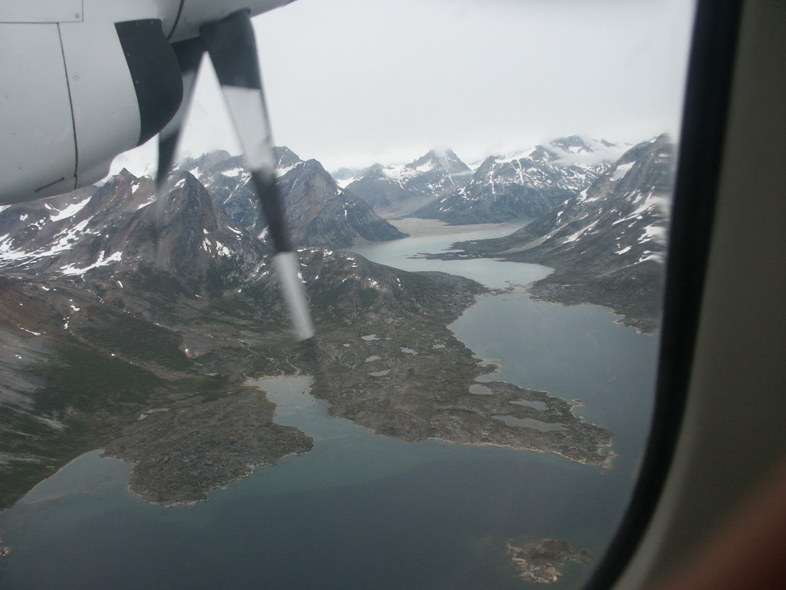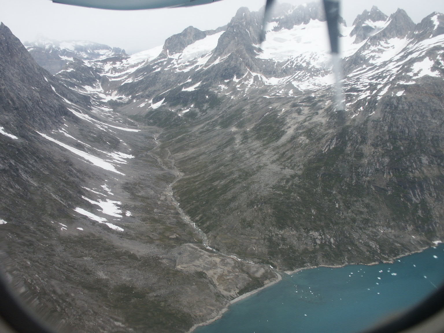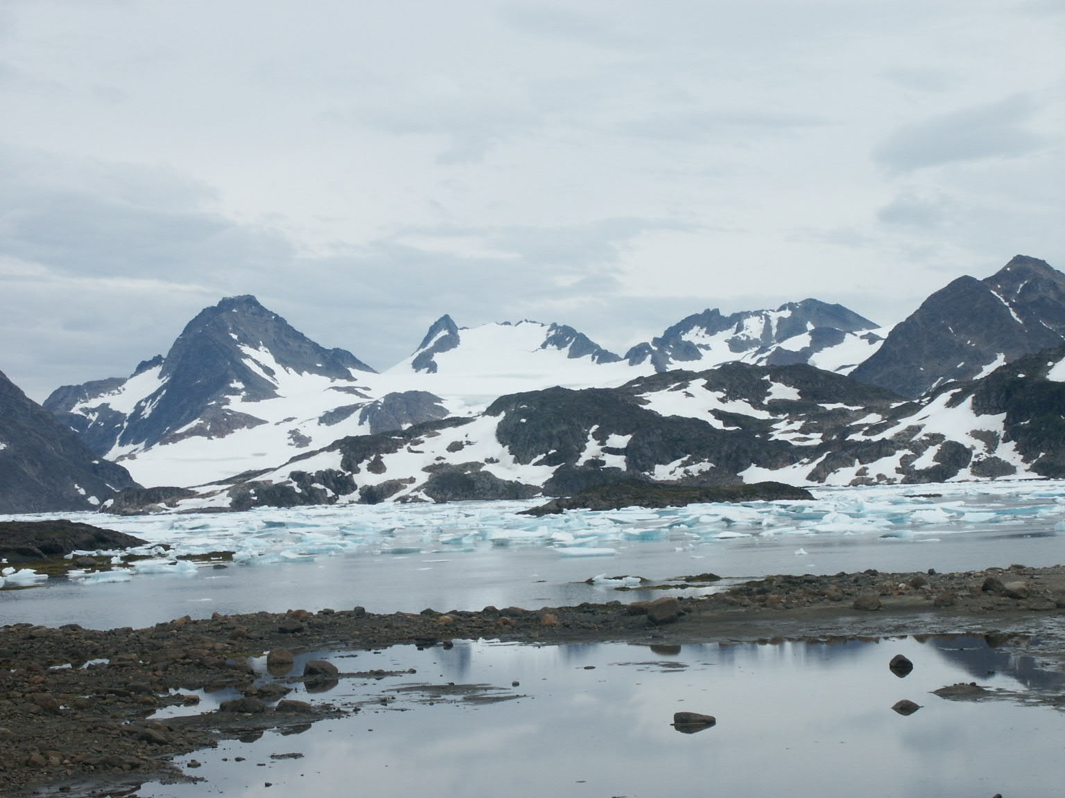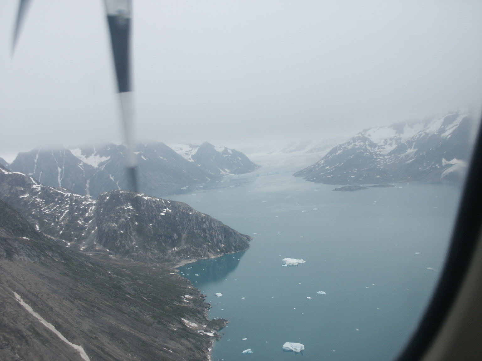 In de verte is de Kurt Rasmussen Gletsjer te zien.